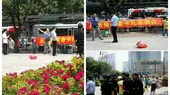 The petition is first publicised on large posters that read "Raising Funds" (left) and "Peaceful Petition — Seven Demands".